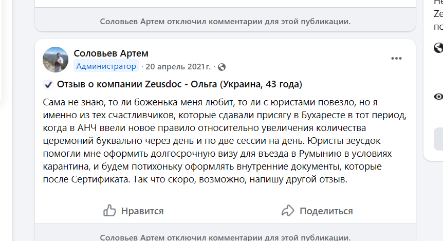 О компании Zeusdoc отзывов достаточно много, ознакомиться с ними можно на этой странице ниже. Кроме того, мнение клиентов можно найти на Facebook и официальном сайте. По большей мере, клиенты положительно высказываются о сотрудничестве с этим агентством.