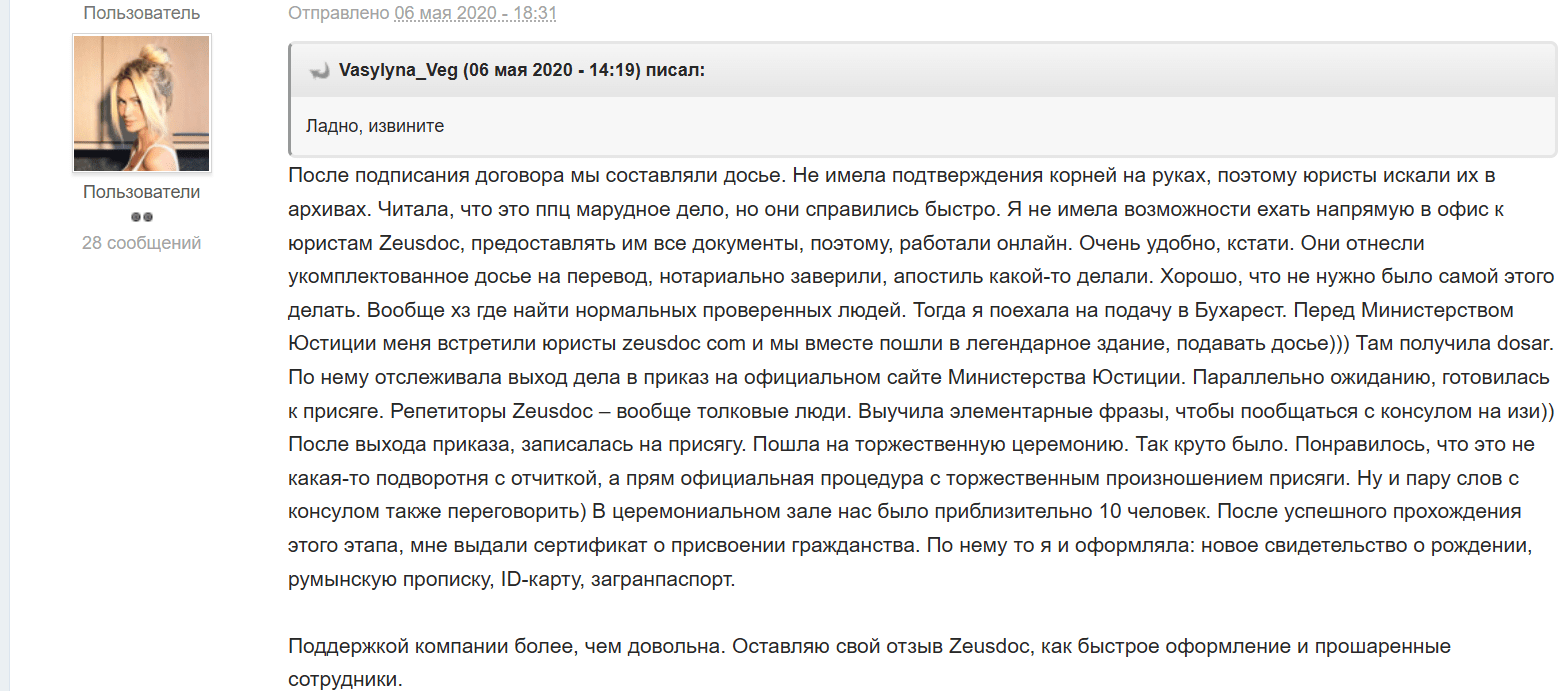 Анализируя отзывы о zeusdoc.com, можно выделить услуги, вызывающие наибольший интерес. Лидером обсуждений остается программа репатриации в Румынию. Это объяснимо: процедура позволяет получить гражданство ЕС, сохраняя первый паспорт. Пользователи детально разбирают этапы поиска «корней» и формирования досье.
